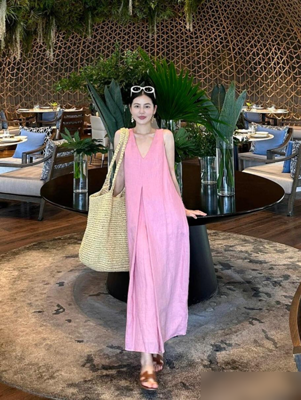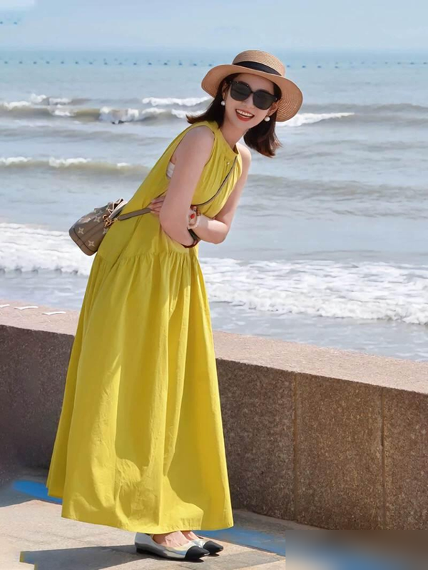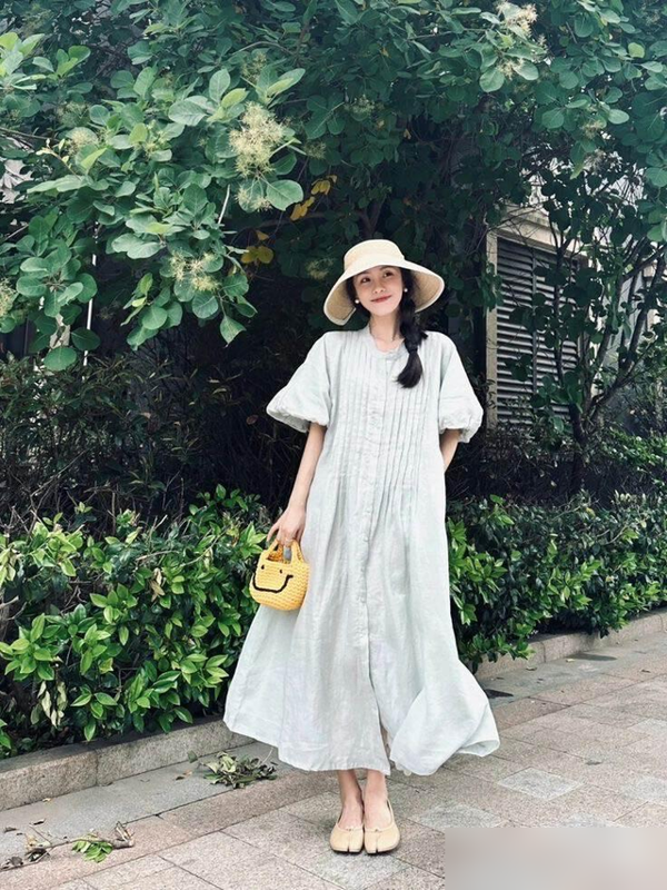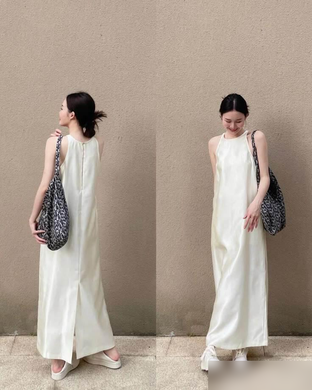 以前总觉得短裙更凉快,现在才懂长裙的妙处——轻轻一裹,腿上的小缺点全藏得稳稳当当,走起路来裙摆飘飘,连步子都跟着优雅起来。
